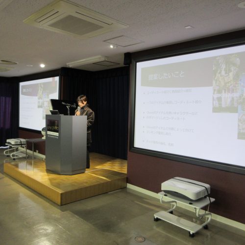 水戸オーパの売り場をお借りして、学生が考えたショップを実際に運営させていただいています。企画段階から学生のアイディアにアドバイスをいただき、プレゼンテーションにも参加していただきました。
