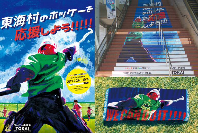 東海高校を応援するグッズを提案し、のぼりやポスターに実用されました。