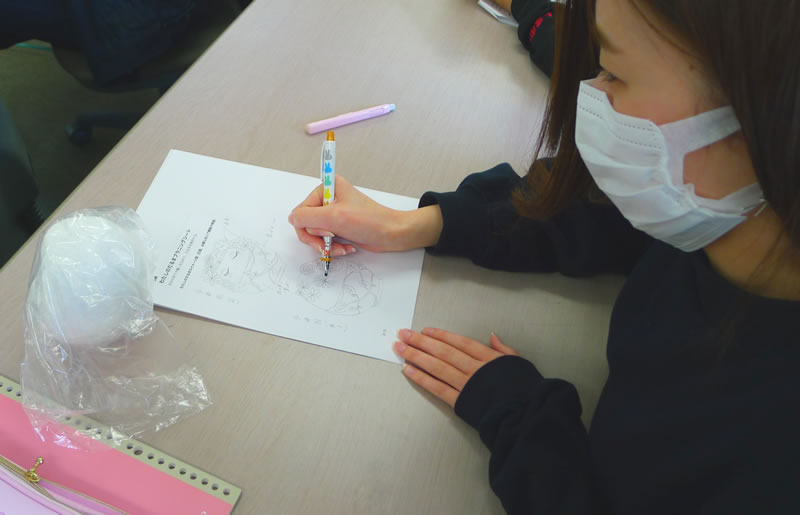 平面表現方法のトレーニングを行い、立体表現へと繋げていきます