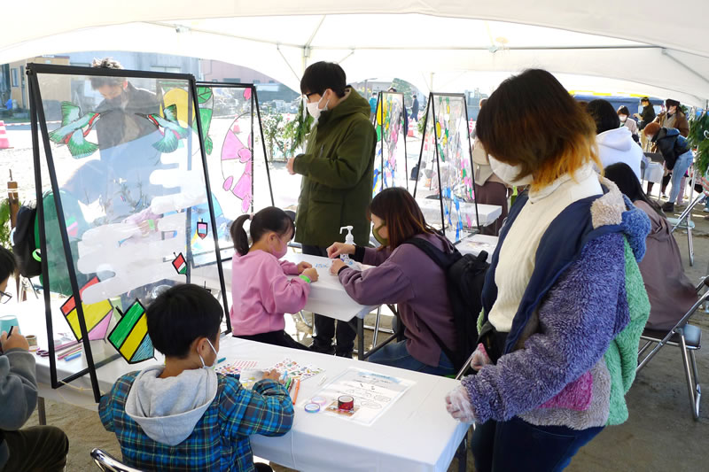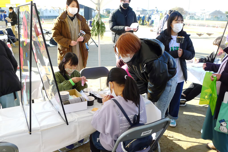 産学連携の学習とともにイベントでものづくりなどの楽しいワークショップを行います。アンケート調査を行い課題制作にもいかします。