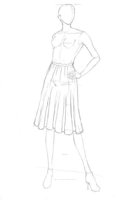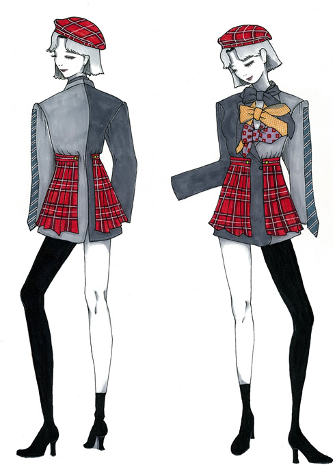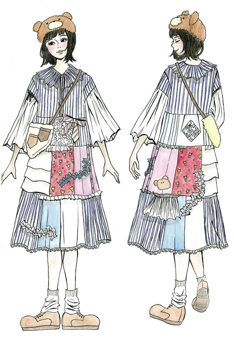 服の構造や素材の特性をいかしたデザインイメージを表現するテクニックを身につけます