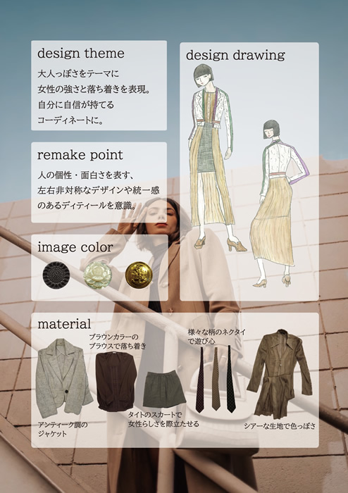 ファッションの流通や販売促進に必要なスタイリングの基本的な知識や技術を学び、自分らしいの表現やスタイリングにいかします