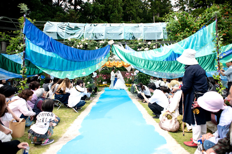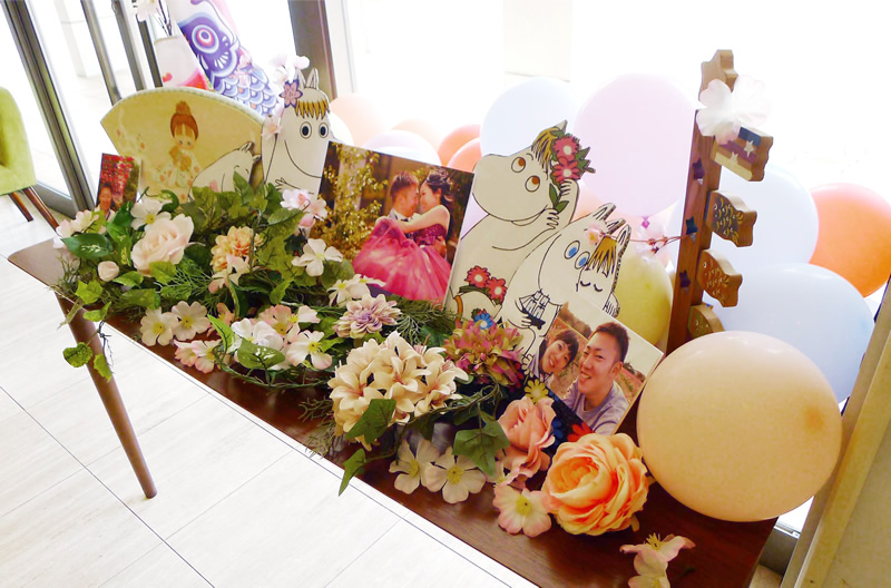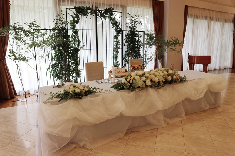新郎新婦へのヒアリング、プランニング、ウェディングドレスの制作、会場作り、式の進行運営までみんなで全て作り上げました当日は素敵な式となりました! -