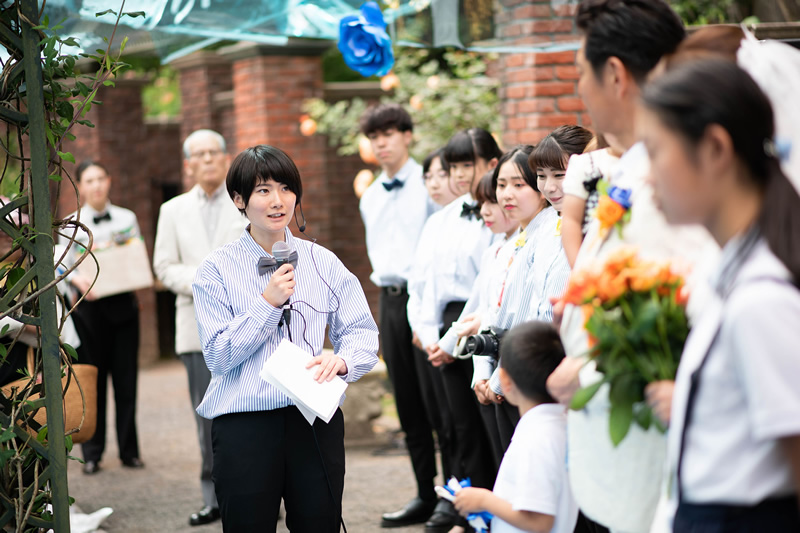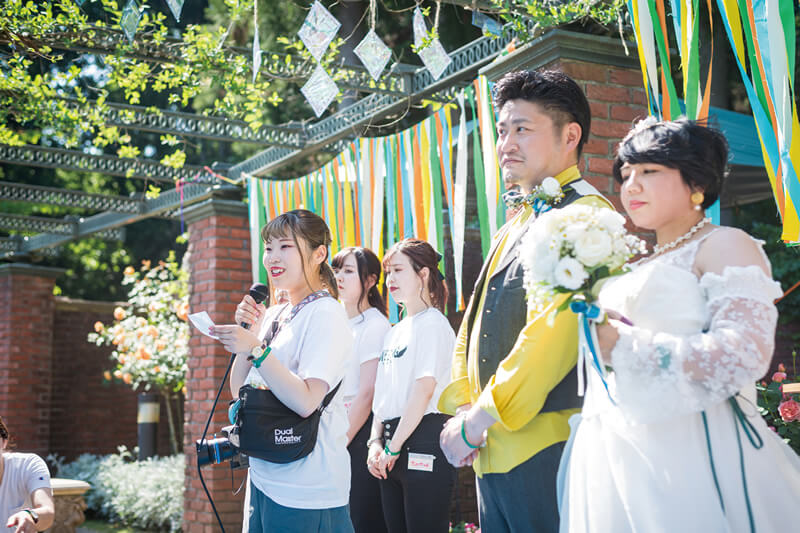 七ツ洞公園で行われた人前式にゼクシィの関係者もご来場いただきました。また、授業の中で行われた反省会にもご参加いただきアドバイスをいただきました。