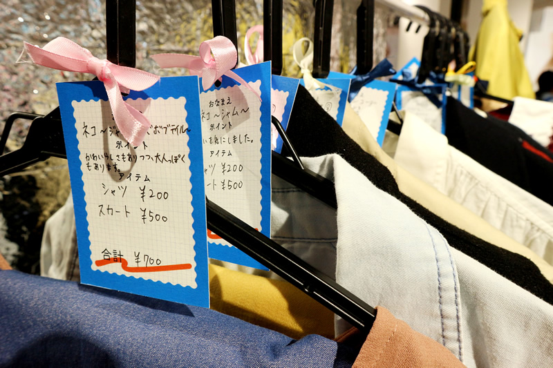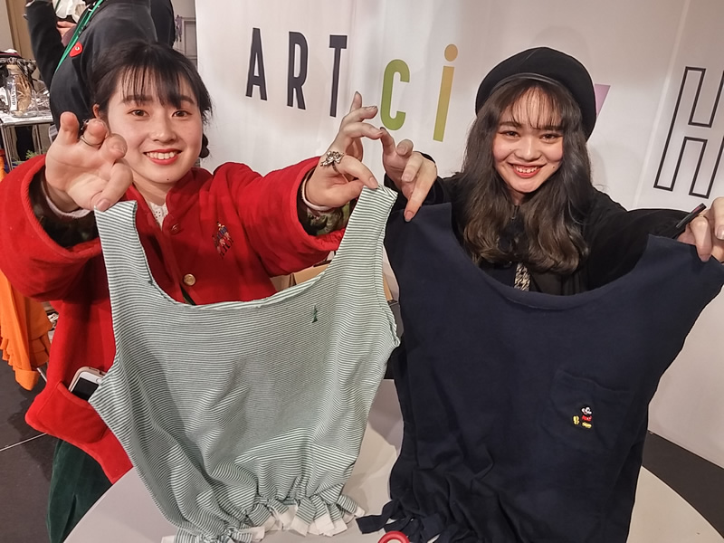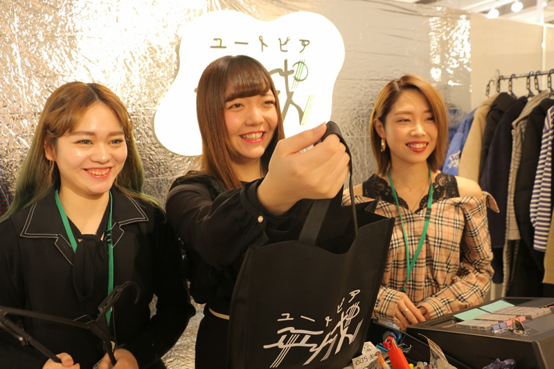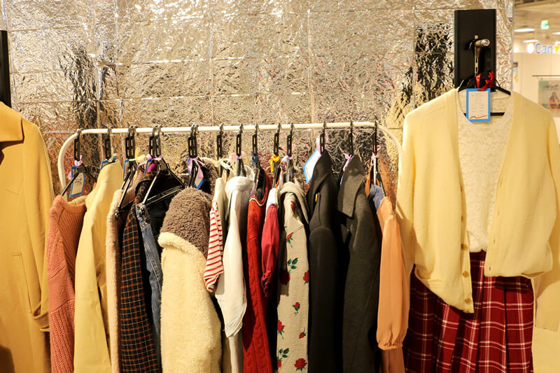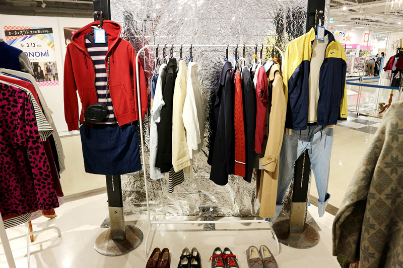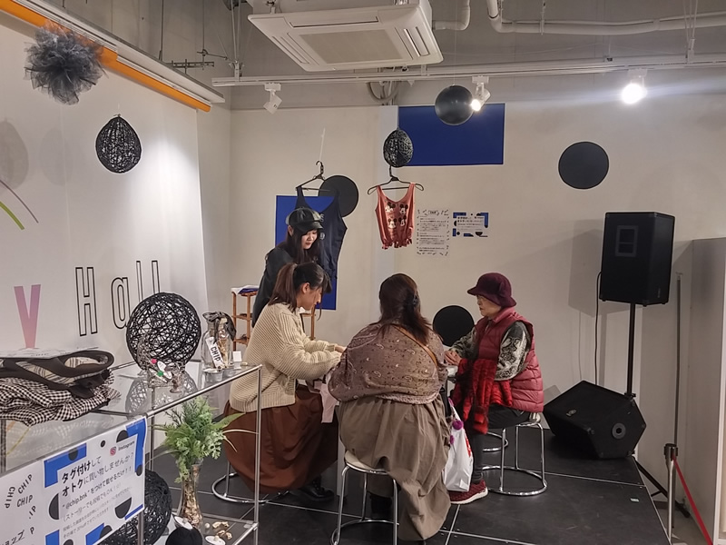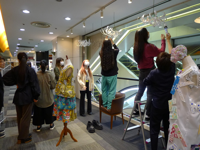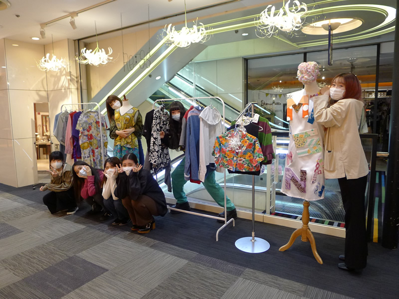 売り場をお借りしてリメイク衣料を販売させていただいています。学生が考えたディスプレイ案のプレゼンテーションにもご参加いただき、アドバイスをいただきました。