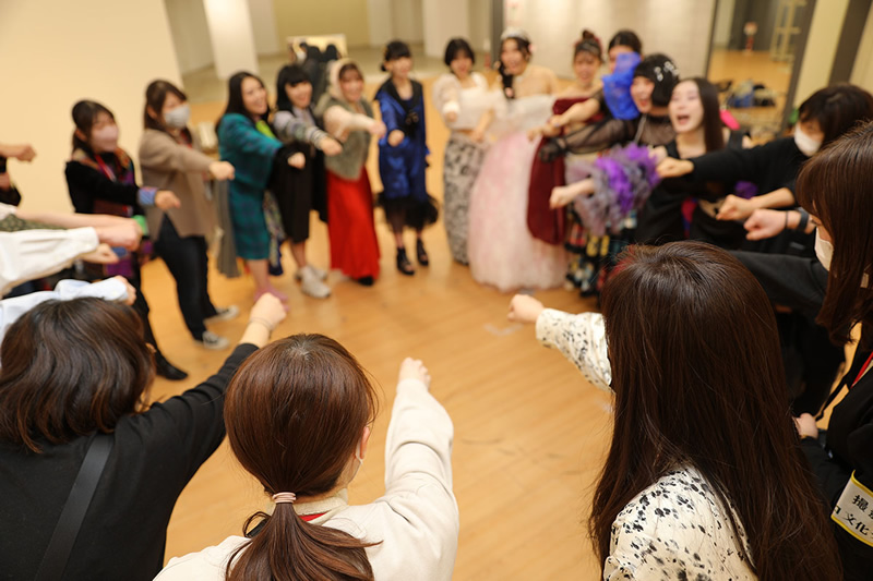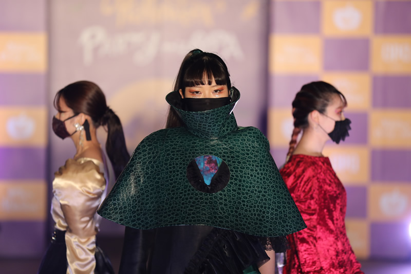 毎年実施するファッションショー衣装のデザイン・制作はもちろん、ショーの演出・構成、メイクやヘアメイク、そしてモデルまで学生だけで作り上げます。 -