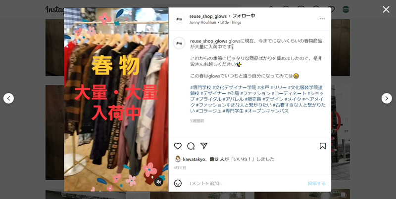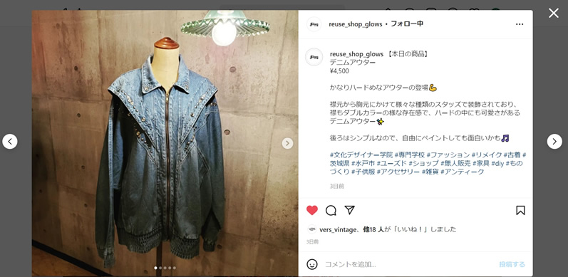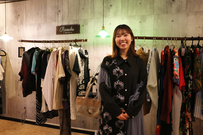 提供してもらった古着を学生がリメイクして販売しています!店舗名:glows -グロウズ-