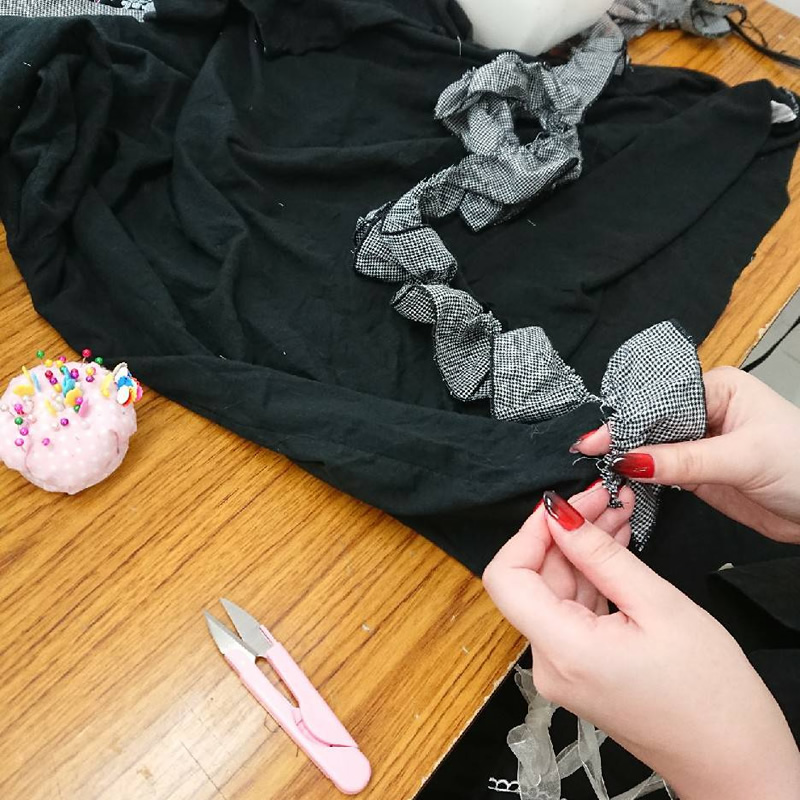 制作過程で生地や素材の理解、制作技術を身につけます -