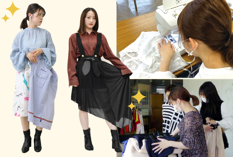 リメイク衣料を制作し実際に店舗販売を行うことで、時代のニーズに合わせた制作技術を習得します
