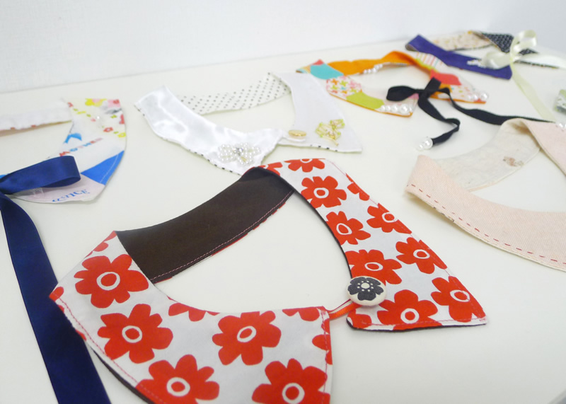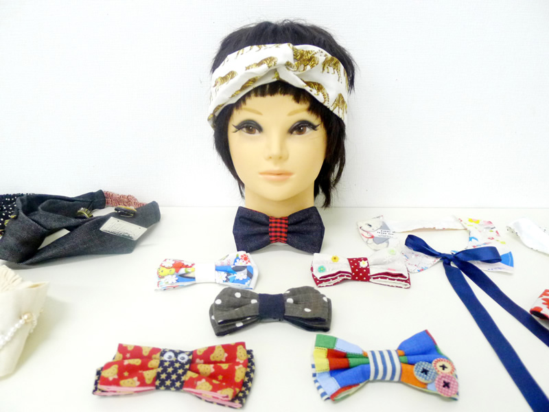 企画展のイベントでワークショップを作家さんと一緒に行いました。着なくなったお洋服や、使いみちのなかった布を持ち寄って、アクセサリーや小物を制作しました。
