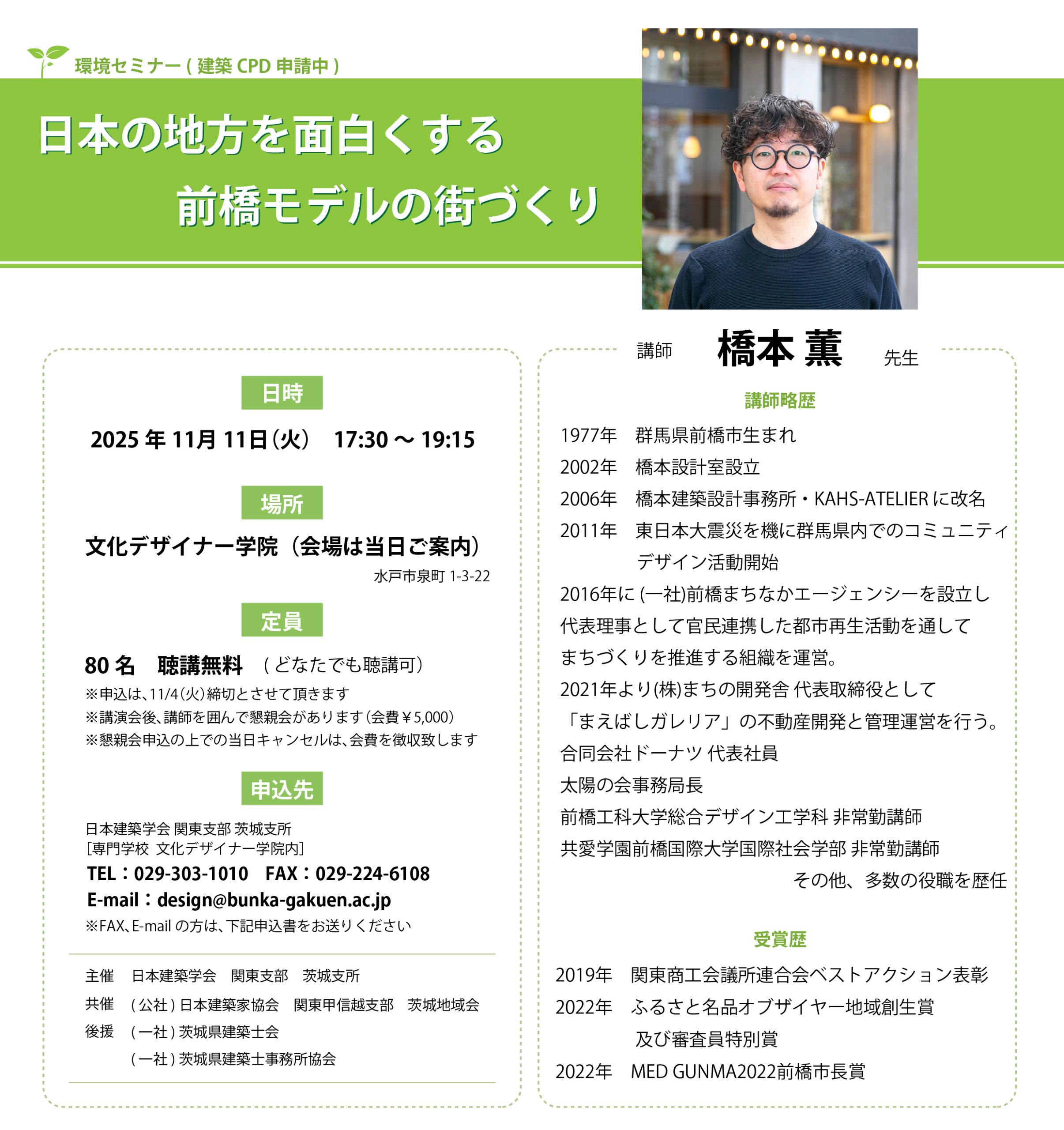 11月11日(火)、日本建築学会 関東支部 茨城支所主催の