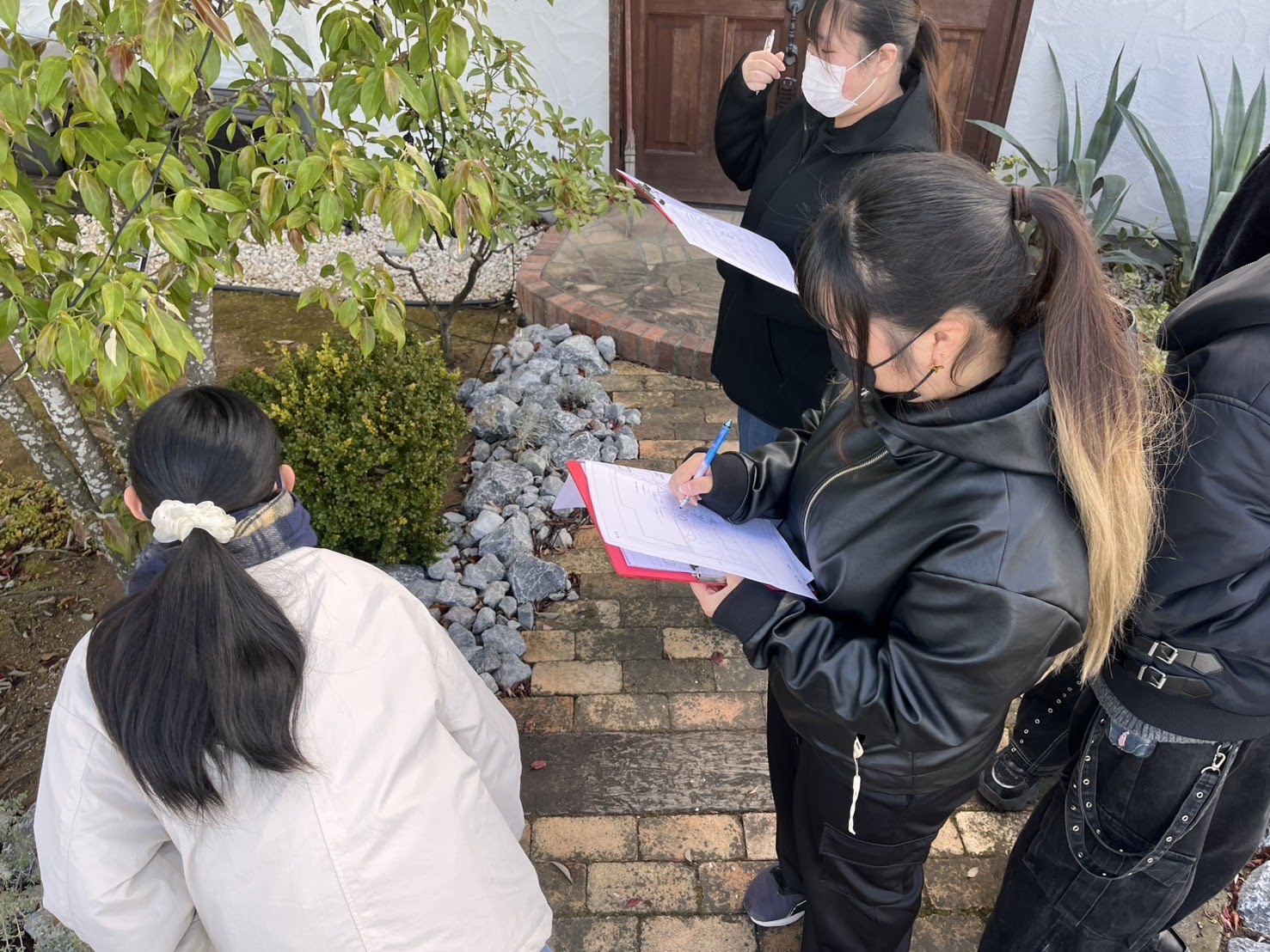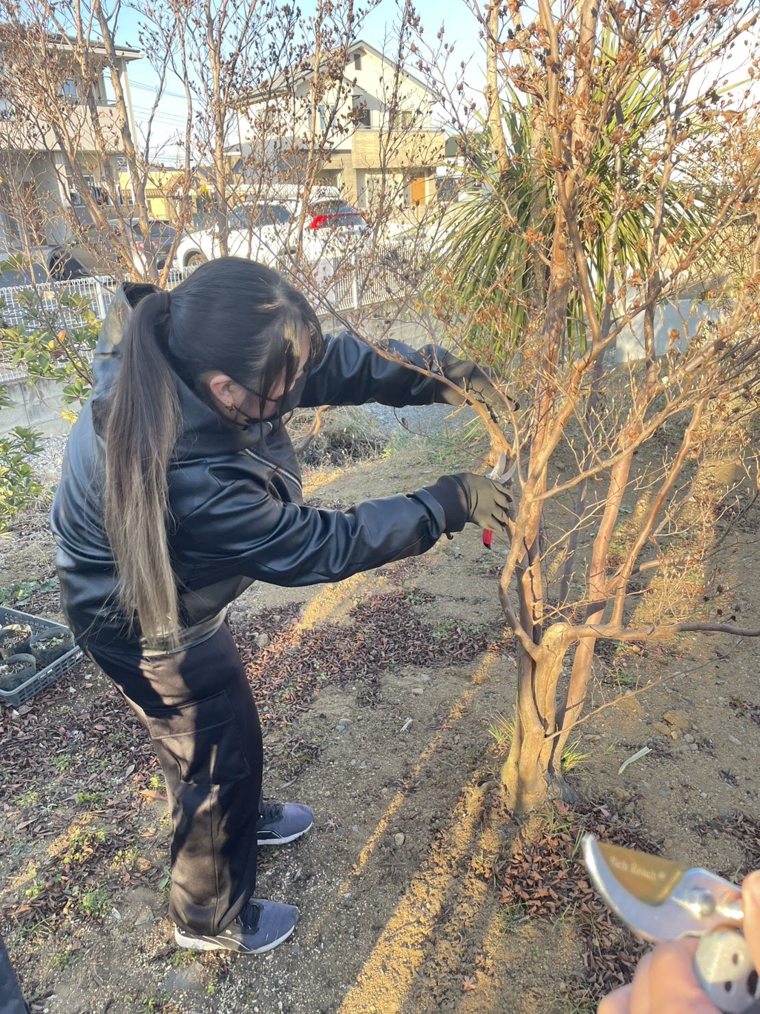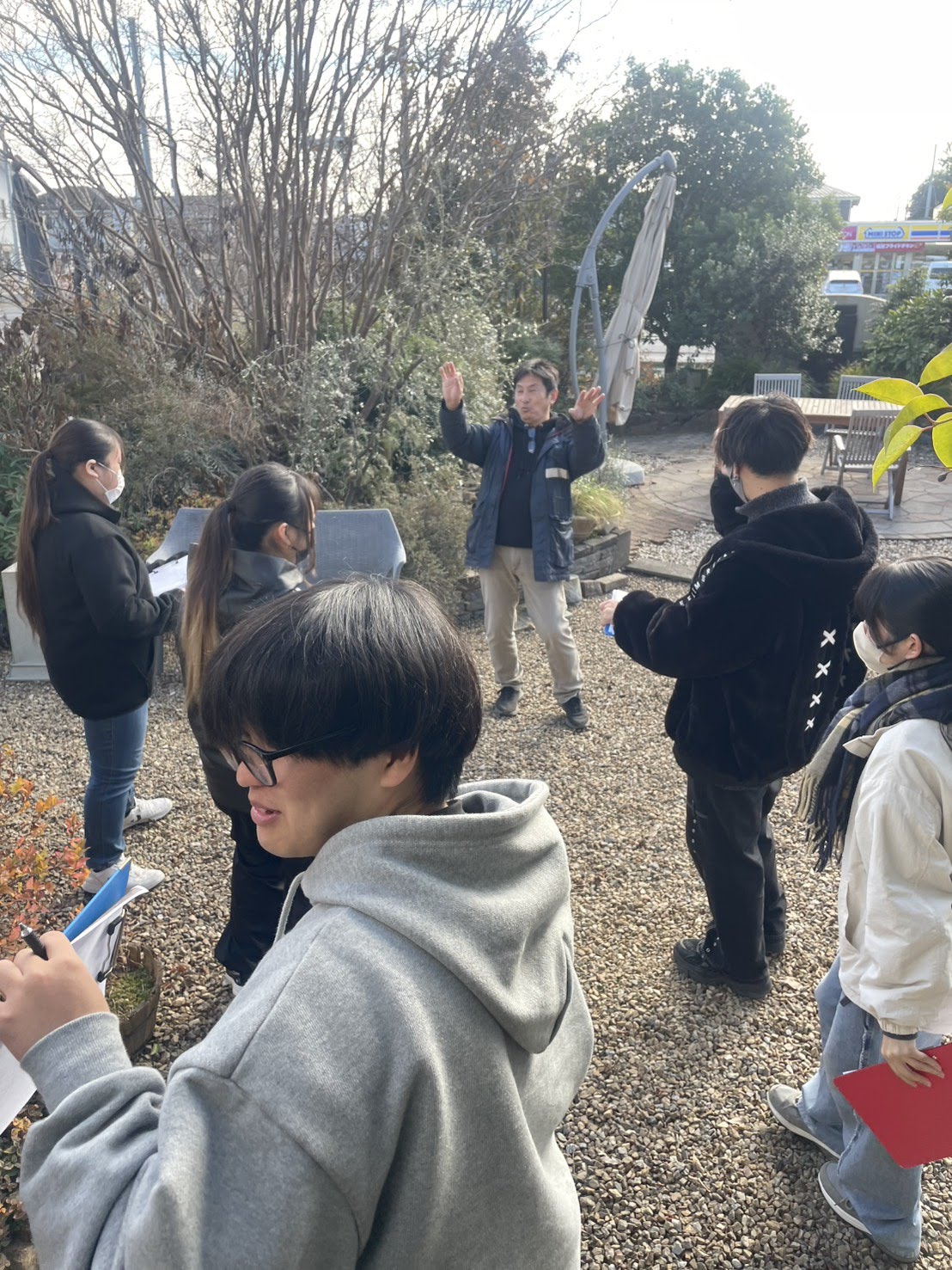 ガーデンデザインの授業で実習を行いました! 2026年1月20日(火) 12/9(火)に建築設計デザイン学科2年生は ガーデンデザインの授業で実習を行いました! 今回は先生の会社で維持管理されている美容室にお邪魔して、 実際に管理されている植栽について学習しました。 敷地内にある数多くの植物の種類や管理方法、 その他にも、配置や景観、動線なども考えられた庭について学んでいきます。 その後は会社にある植栽を使い管理方法のひとつである剪定を実際に行いました! 学生たちは初めての剪定にドキドキしながらハサミを入れていきます。 今回も実際の庭での授業や、初めての剪定作業でした。 頭と体を使い、寒さの中の授業に学生たちは疲れた様子でしたが、 経験することの大切さも学んだ一日だったと思います! この経験を今後の制作活動にも活かしていきます! ご協力いただきましたファームガーデン株式会社様ありがとうございました! ∴‥∵‥∴‥∵‥∴‥∴‥∵‥∴‥‥∵‥∴‥∵‥∴‥∴‥∵‥∴‥ 体験入学会では授業の内容が詳しくわかり、 体験授業でデザインの楽しさに触れることができます♪ ぜひ一度遊びに来てみてください☆彡 ↓体験入学のスケジュールや内容は下記をチェック↓ https://bunka-gakuen.ac.jp/opencampus/index.html ∴‥∵‥∴‥∵‥∴‥∴‥∵‥∴‥‥∵‥∴‥∵‥∴‥∴‥∵‥∴‥ 次の記事へIT未来高校「中庭プロジェクト」制作中! 前の記事へ建築設計デザイン学科は修了制作の学内プレゼンテーションを行いました! 学科ラインナップ 広告プロモーションデザイン学科 ファッションビジネス学科 建築設計デザイン学科 HOME PAGE TOP