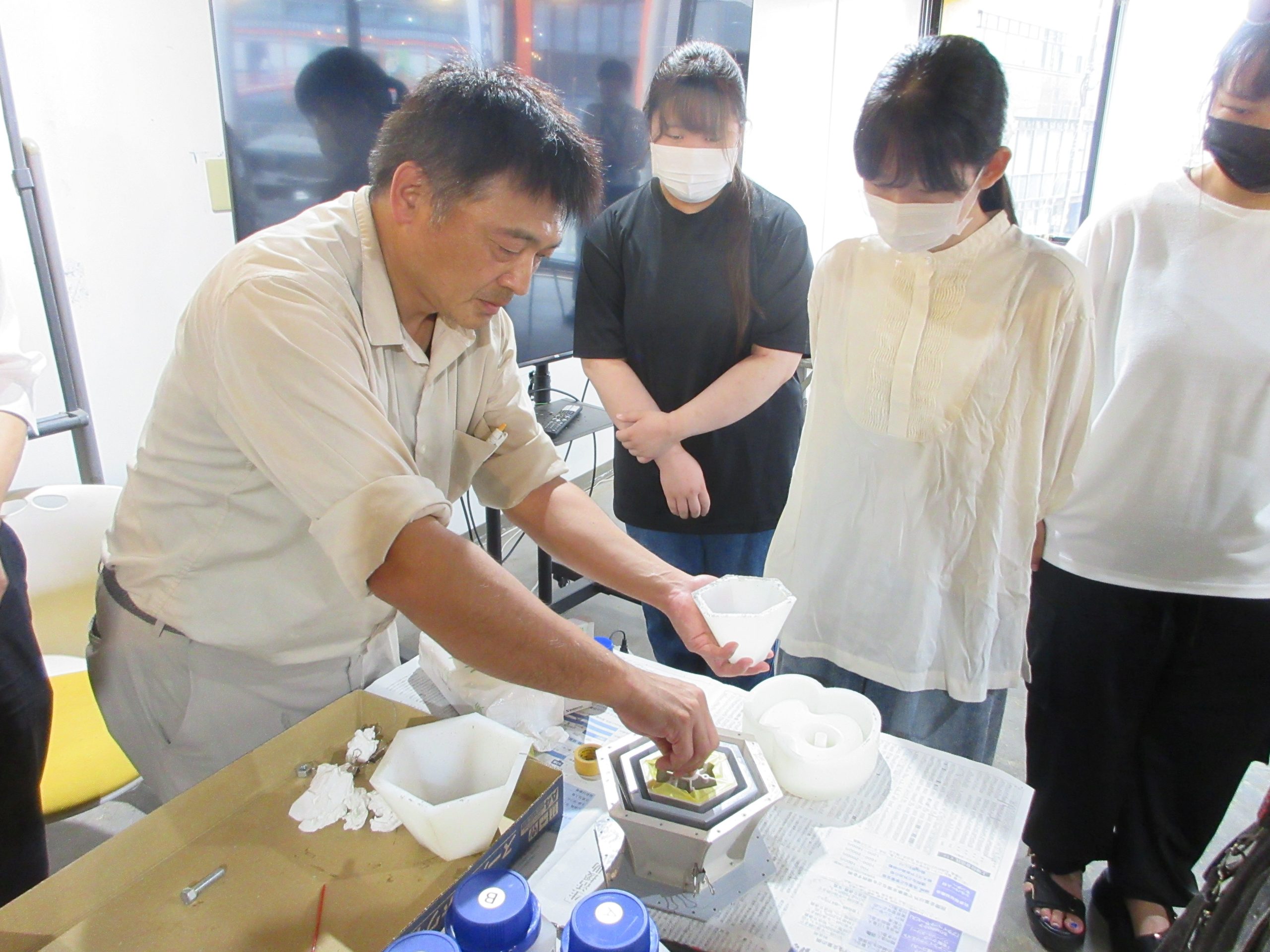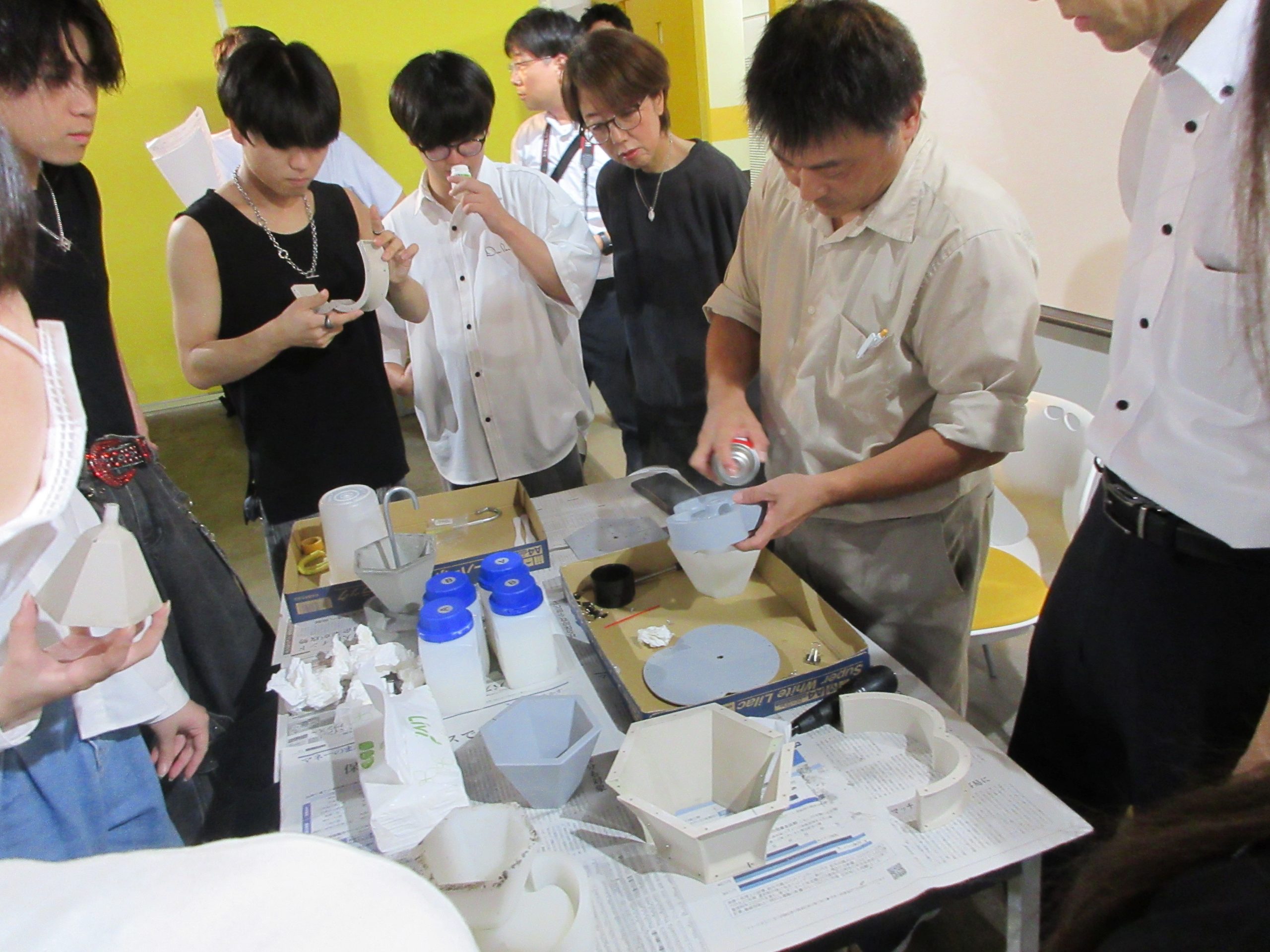 コンクリートプランターレクチャーを行いました! 2025年10月14日(火) 9月12日(金)に建築設計デザイン学科2年生は 小河原セメント工業株式会社 様にご協力いただき、 雑貨デザインの授業で制作したコンクリートプランターを 作成するためのレクチャーをしていただきました! 学生たちは初めて見るシリコン製の型枠や 3Dプリンターで制作された型枠に興味津々です。 型枠の脱型方法や型枠の組み方レクチャーしていただき、 シリコン製型枠の作り方、コンクリートプランターの製造方法を実際に行いました! これから学生たちは、プレゼンで選ばれたデザインのプランターを制作していきます! 制作したプランターは、地下ショップと1階グリーンインテリアショップで販売します。 小河原セメント工業株式会社の皆様、茨城県コンクリート製品協同組合の皆様、 ご協力いただきありがとうございました。 ∴‥∵‥∴‥∵‥∴‥∴‥∵‥∴‥‥∵‥∴‥∵‥∴‥∴‥∵‥∴‥ 体験入学会では授業の内容が詳しくわかり、 体験授業でデザインの楽しさに触れることができます♪ ぜひ一度遊びに来てみてください☆彡 ↓体験入学のスケジュールや内容は下記をチェック↓ https://bunka-gakuen.ac.jp/opencampus/index.html ∴‥∵‥∴‥∵‥∴‥∴‥∵‥∴‥‥∵‥∴‥∵‥∴‥∴‥∵‥∴‥ 前の記事へ現場見学会を実施しました! 学科ラインナップ 広告プロモーションデザイン学科 ファッションビジネス学科 建築設計デザイン学科 HOME PAGE TOP