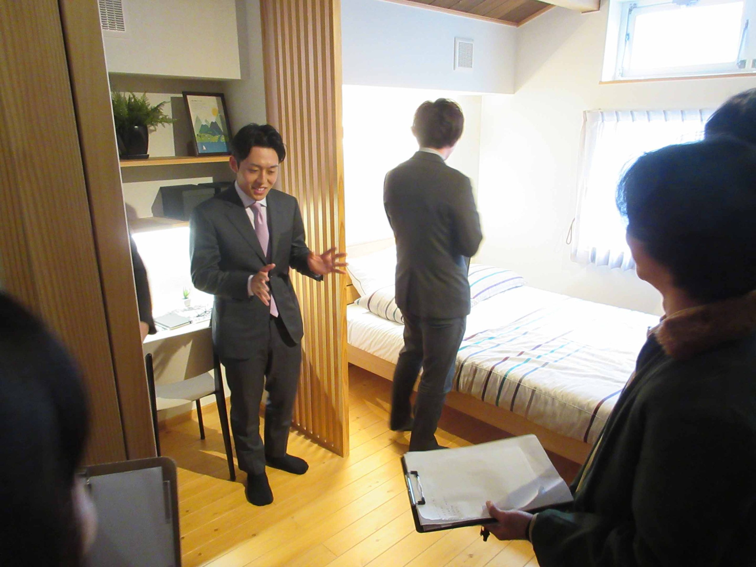 モデルハウス見学会を行いました! 2025年10月28日(火) 10月24日(金)に建築設計デザイン学科3年生が、 インテリアを学ぶ授業の一環で、水戸市の棟匠様のモデルハウス見学を行いました。 良質な木材にこだわった「無垢の木」の住まいが特徴の棟匠様は 内装や設備にもこだわりが詰まっていました! モデルハウスは、住む方のイメージ設定が決まっており、空間づくりの勉強になりました! 老夫婦が住むイメージの家と若い夫婦が住むイメージの家では、テイストが異なるだけでなく、 「玄関から上がるところにステップがあり、脚が悪くても楽に上がれる」、 「子どもの行動がキッチンからでも見えるつくり」など、 様々な工夫がありました。 また、東匠様では「全館空調」という設備を取り入れていて、 すべての部屋の空気を循環させることで、 どの部屋も同じ温度で暑さ寒さのストレスがない家づくりをしているとのことでした。 この設備も学生は見学させていただき、大興奮でした! お客様のことを本気で考えた家づくりに、学生達は非常に感動したようです。 講師の先生に一つ一つのインテリアや照明計画など説明をおさらいしていただき これまで学んできたことを再確認することができました! 迫間先生、ご指導ありがとうございました。 また、ご協力いただきました棟匠様、 貴重な機会をいただきまして、ありがとうございました。 ∴‥∵‥∴‥∵‥∴‥∴‥∵‥∴‥‥∵‥∴‥∵‥∴‥∴‥∵‥∴‥ 体験入学会では授業の内容が詳しくわかり、 体験授業でデザインの楽しさに触れることができます♪ ぜひ一度遊びに来てみてください☆彡 ↓体験入学のスケジュールや内容は下記をチェック↓ https://bunka-gakuen.ac.jp/opencampus/index.html ∴‥∵‥∴‥∵‥∴‥∴‥∵‥∴‥‥∵‥∴‥∵‥∴‥∴‥∵‥∴‥ 前の記事へ広告プロモーションデザイン学科2年生が修了制作の中間審査を行いました! 学科ラインナップ 広告プロモーションデザイン学科 ファッションビジネス学科 建築設計デザイン学科 HOME PAGE TOP