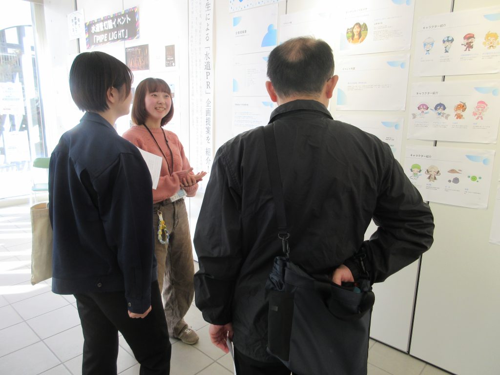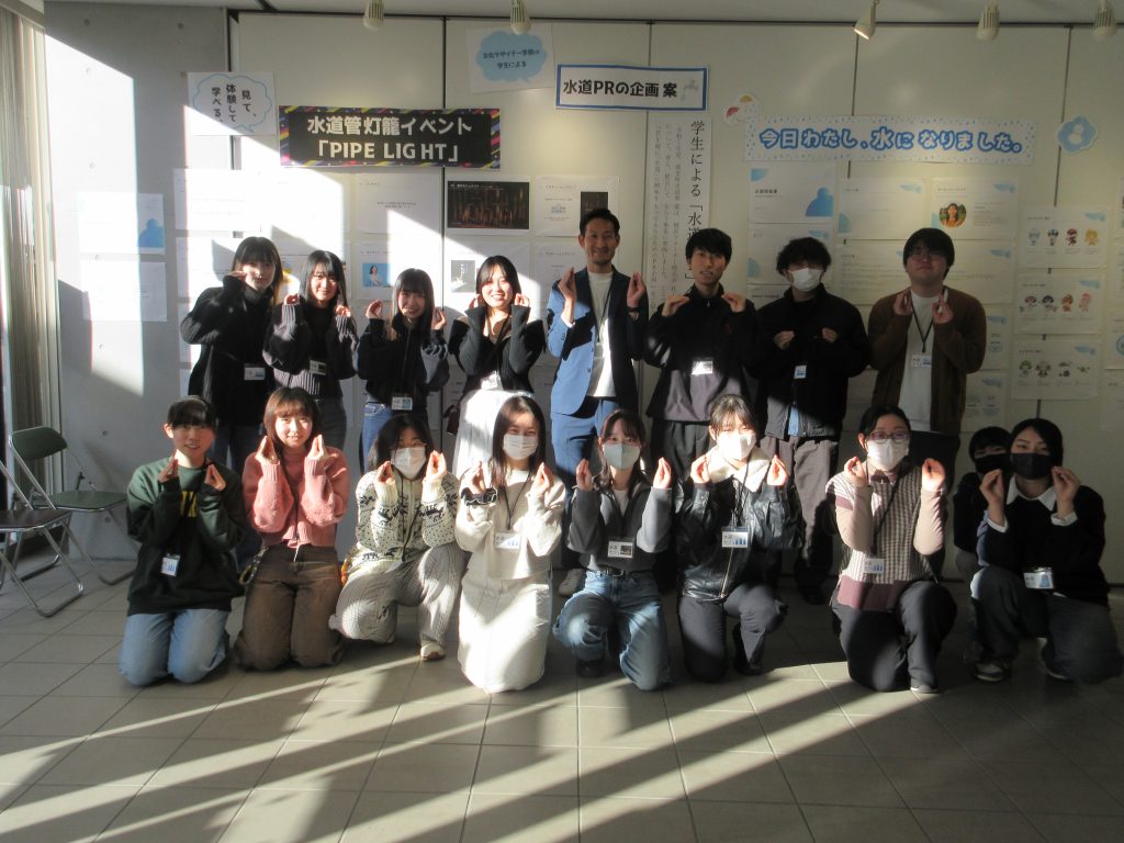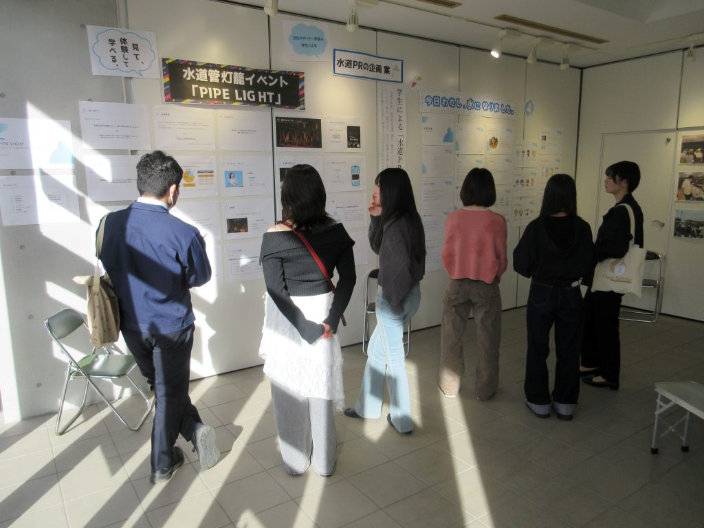地域デザインゼミの学生が「しろさとコラボ×水道カフェ」に参加しました! 2026年2月18日(水) 広告プロモーションデザイン学科3年生の地域デザインゼミの学生は、 1月22日、城里町の町役場で開催された「しろさとコラボ×水道カフェ」に参加しました。 学生たちは、「水道事業の課題解決について」をテーマに 漏水した破損管の展示や水道設備・料金等に関するクイズの掲示、 来場者に対して、水道PR企画案のプレゼンテーションを実施しました。 利き水体験では、運営側として 来場者に、「石塚浄水場」と「水戸浄水場」、「赤沢浄水場」の 3種類の水の違いを当ててもらうという体験を行い、地域住民との交流を深めました。 ∴‥∵‥∴‥∵‥∴‥∴‥∵‥∴‥‥∵‥∴‥∵‥∴‥∴‥∵‥∴‥ 体験入学会では参加した学生の話や昨年の作品を見ることができます! ぜひ一度遊びに来てみてください☆彡 ↓体験入学のスケジュールや内容は下記をチェック↓ https://bunka-gakuen.ac.jp/opencampus/index.html ∴‥∵‥∴‥∵‥∴‥∴‥∵‥∴‥‥∵‥∴‥∵‥∴‥∴‥∵‥∴‥ 次の記事へ建築設計デザイン学科の修了制作審査会を行いました! 前の記事へ広告プロモーションデザイン学科1・2年生が修了制作の最終プレゼンテーションを行いました! 学科ラインナップ 広告プロモーションデザイン学科 ファッションビジネス学科 建築設計デザイン学科 HOME PAGE TOP