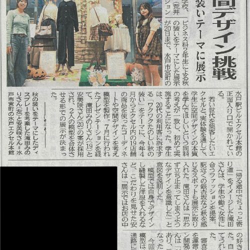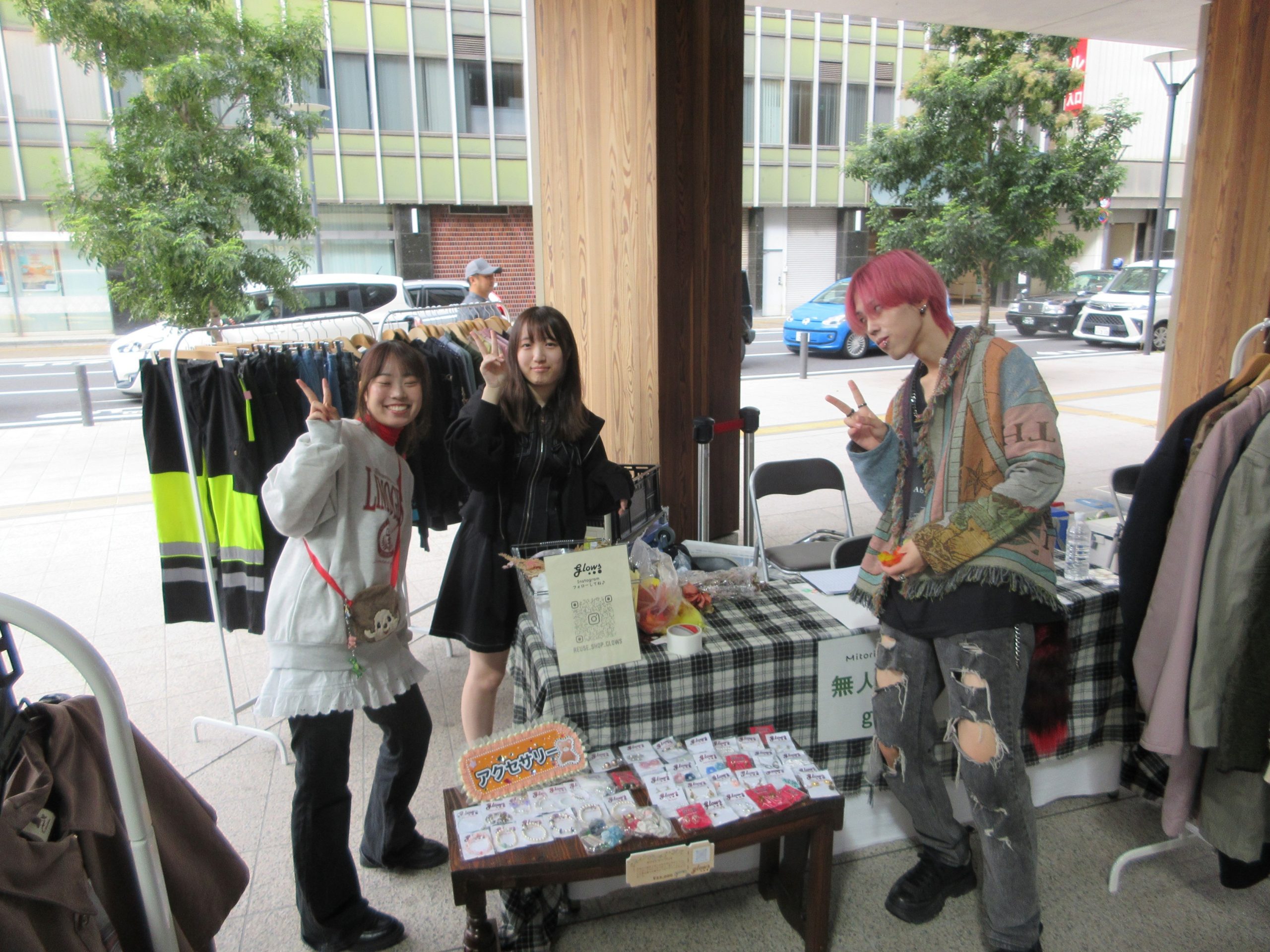 無人古着屋glowsのポップアップショップをOPENしました♬ 2025年10月12日(日) 10月12日(日)に水戸市民会館で開催したミトリオマルシェにて 本校地下にある無人古着屋glowsのポップアップショップをOPENしました! 水戸京成百貨店や水戸芸術館でも催事を行っており、 イベントは大きな盛り上がりを見せていました! 当日はファッションビジネス学科の学生が協力して、 店舗設営から接客まで対応したので、 少しだけ様子をお見せしますね! 梅大使も遊びに来てくれて、 学生にインタビューもしてました♬ 皆さんもぜひ文化デザイナー学院校舎地下にあります 無人古着屋glowsにお越しくださいね☆ ☆☆☆☆☆☆☆☆☆☆☆☆☆☆☆☆☆☆☆☆☆☆☆☆ 体験授業でデザインの楽しさに触れることができます♪ ぜひ一度遊びに来てみてください☆彡 ↓体験入学のスケジュールや内容は下記をチェック↓ https://bunka-gakuen.ac.jp/opencampus/index.html ☆☆☆☆☆☆☆☆☆☆☆☆☆☆☆☆☆☆☆☆☆☆☆☆ 前の記事へディスプレイデザインを茨城新聞に取り上げてもらいました!! 学科ラインナップ 広告プロモーションデザイン学科 ファッションビジネス学科 建築設計デザイン学科 HOME PAGE TOP