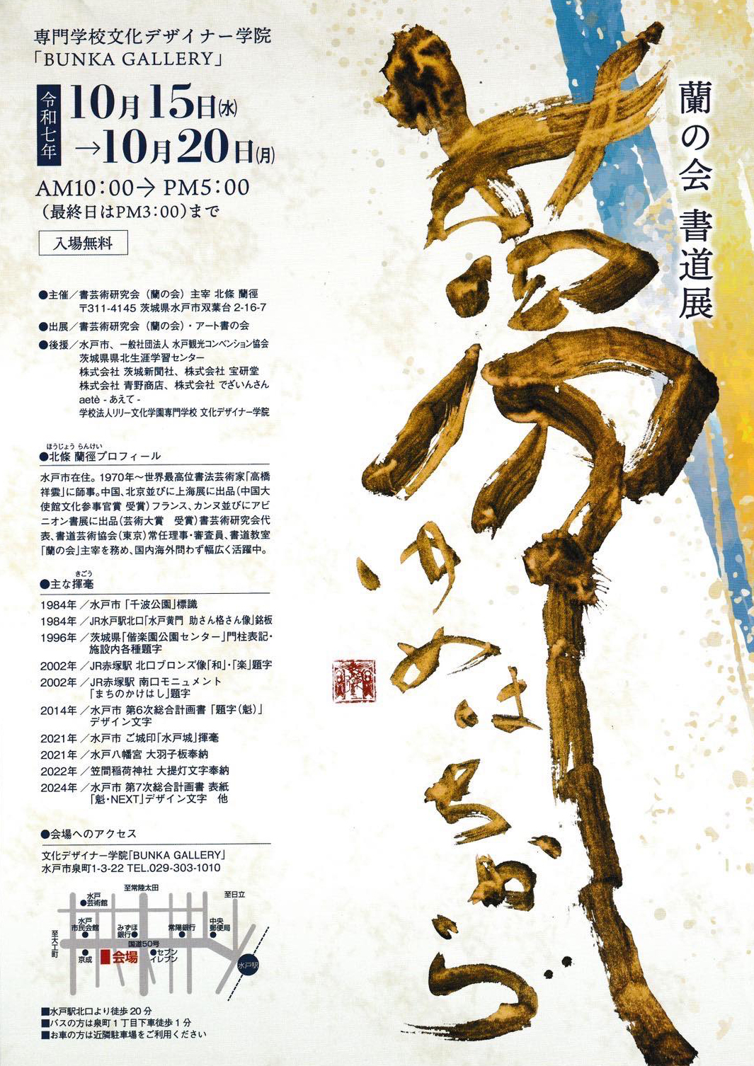 10月15日(水)から本校1Fギャラリーにて書家 北條蘭徑氏が主宰する