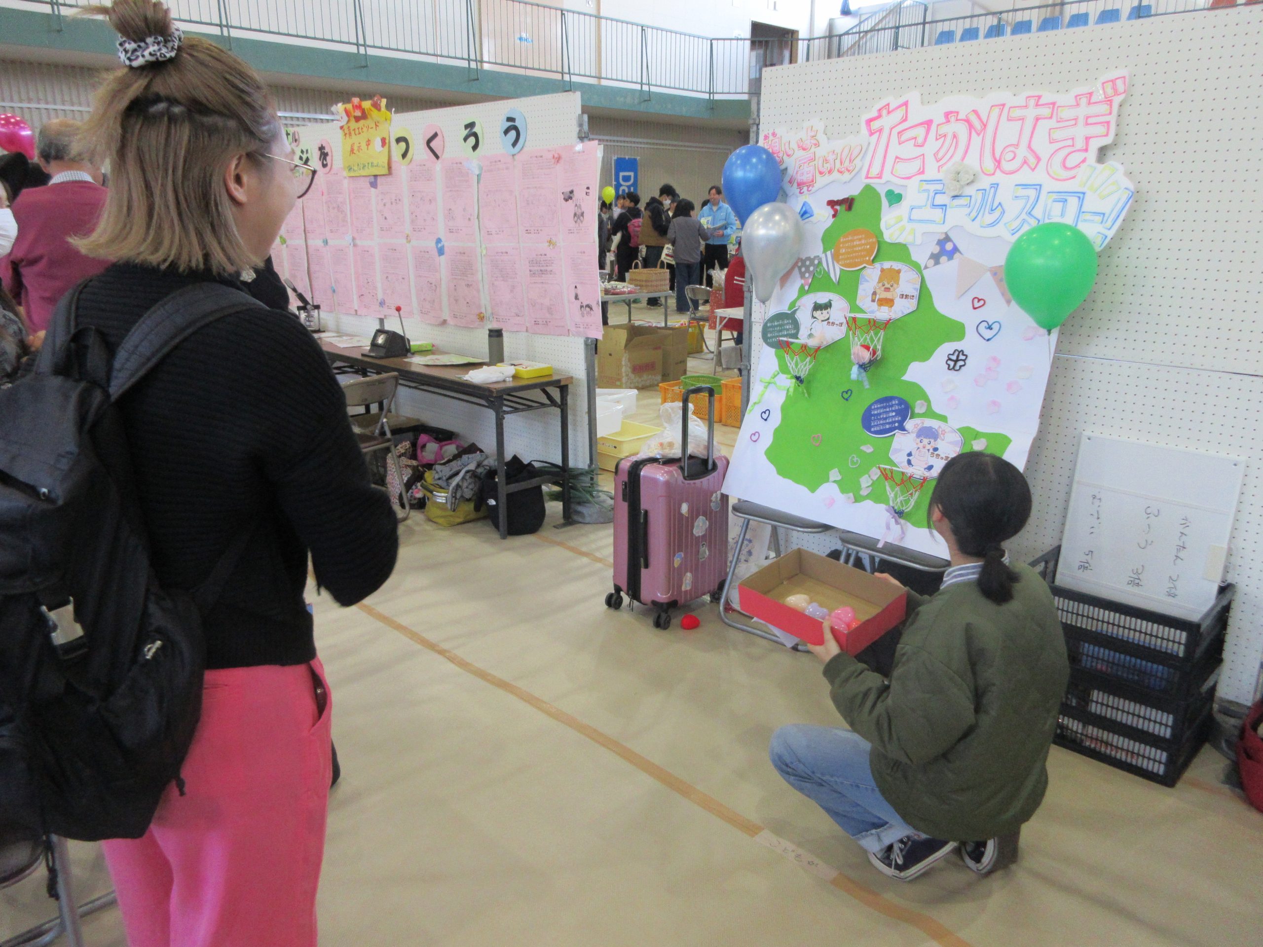 “高萩にエールを送る”という意味でハート型のボールをゴールに向かって投げ入れる